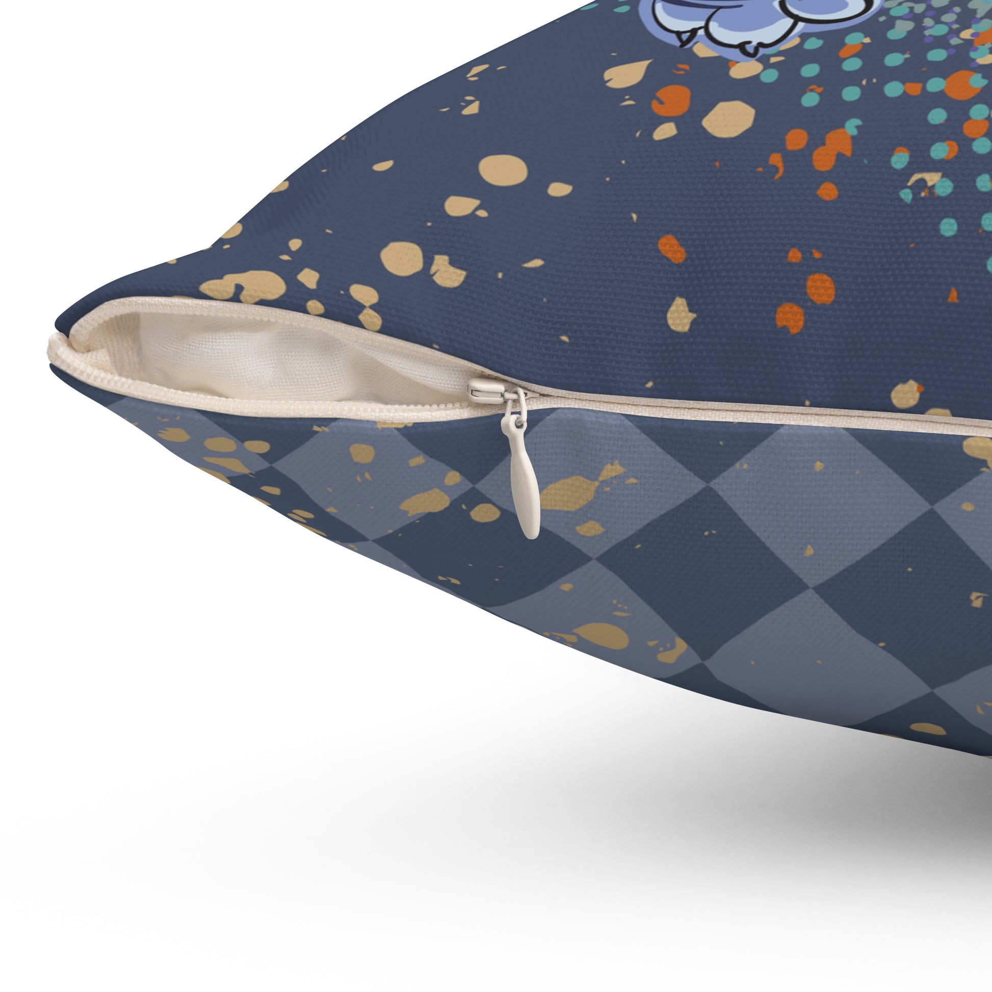 Bring a playful, slightly mysterious charm to your living space with this square spun polyester pillow. A dreamy midnight scene— golden moon, silhouetted sleigh and reindeer, and an impish creature curled at the forefront—gives a whimsical, storybook vibe without feeling juvenile. The double-sided print keeps the design crisp from every angle. It arrives unstuffed (insert vacuum-packed) so you can achieve the extra-plump look by using the larger recycled-polyester insert. The concealed beige zipper blends into the cover, leaving the art uninterrupted and the finish neat. This pillow slips easily into cozy corners, reads-aloud nooks, or an eclectic holiday setup to add personality and a touch of mischief.